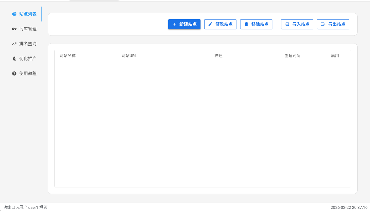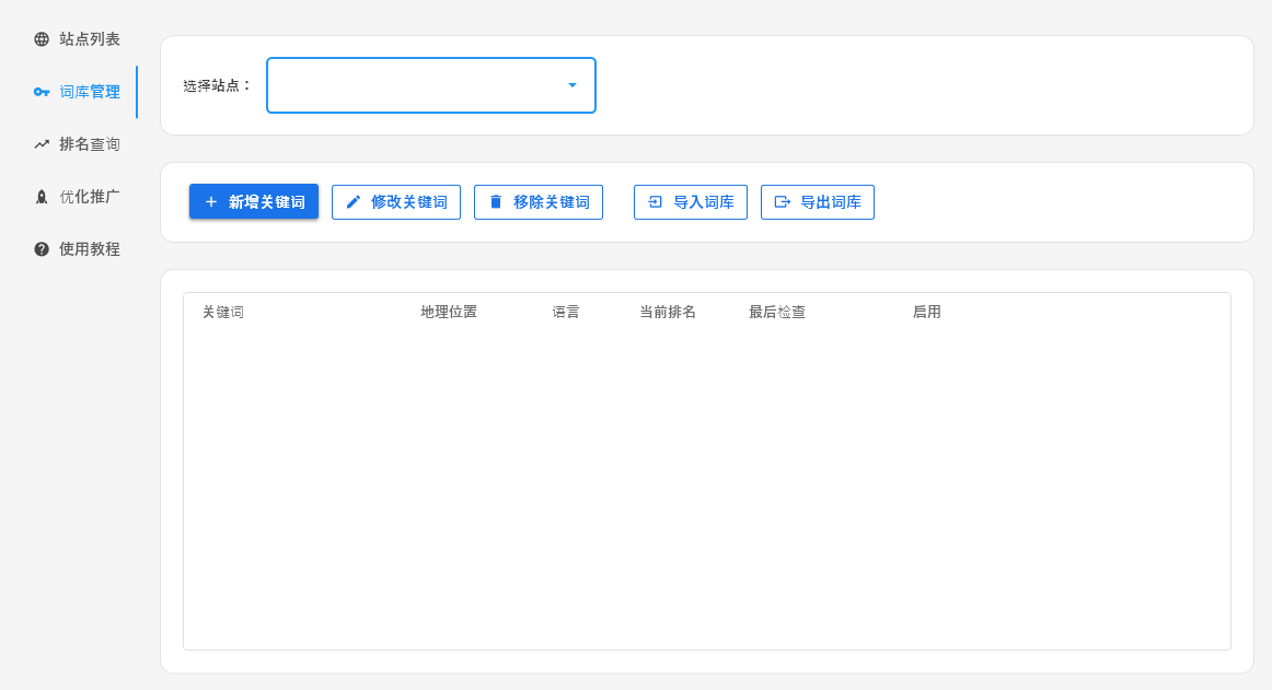 - 有一套 站点 / 关键词资产管理 :多站点、多地区、多语言,支持 TXT/CSV/JSON 导入导出,方便从别的系统迁移词库。